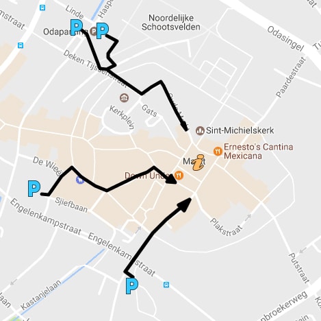 Betaalde parkeergelegenheid is beschikbaar in de parkeergarages in de directe omgeving van de Markt: